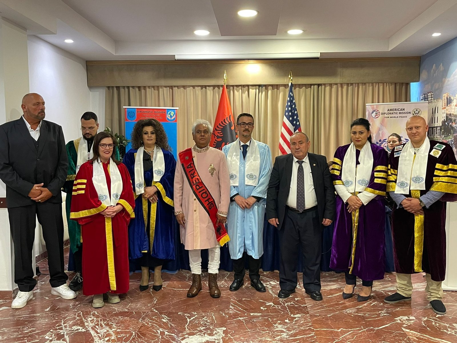 Su intervento del Dr. Shefki Hysa Governatore della Diplomatic Mission and Prosperity (DMPP) e dello Sceicco Dr. Kasem Bader, fondatore a capo della Universal Peace Council (UPC) sotto il “tetto” accreditato delle Nazioni Unite, della NATO e degli Stati Uniti d’America, si sono svolti due giorni di incontri, il 20 e 21 Maggio scorsi, a Tirana in Albania tra i più importanti diplomatici governativi e non governativi pervenuti da tutto il mondo per parlare di pace e di diritti civili.