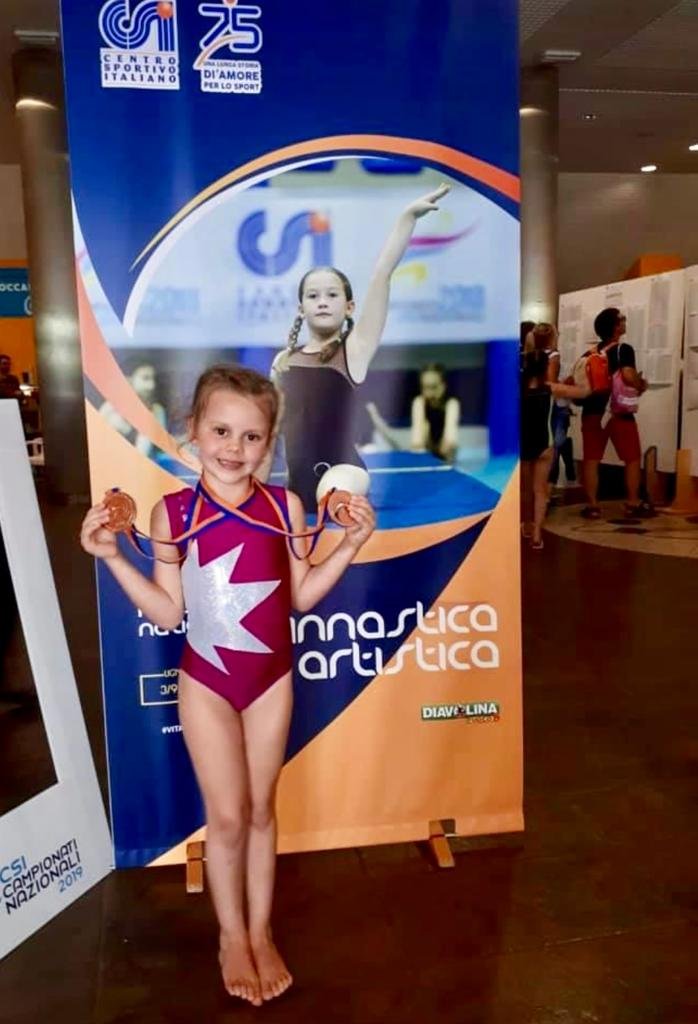 Il percorso sportivo di Vittoria ha avuto inizio a soli 4 anni nel settore della ginnastica artistica. Sin dalle prime esperienze ha manifestato una spiccata predisposizione per quest’attività così complessa. La sua perseveranza negli allenamenti l’ha portata a partecipare alle competizioni annuali, all’interno del circuito CSI (Centro Sportivo Italiano) provinciale e regionale, dove ha ottenuto primi posti, podi e piazzamenti. I risultati sono arrivati in tutte e quattro le discipline della ginnastica artistica: corpo libero, trave, volteggio e trampolino (dove si è particolarmente distinta). Vittoria ha ottenuto 28 medaglie in cinque anni di competizioni, mantenendo quindi sempre elevato il livello delle prestazioni. Questi risultati le hanno inoltre permesso di qualificarsi alle competizioni nazionali, che si tengono ogni anno nel Villaggio Olimpico di Lignano Sabbiadoro. Nel 2019 ha raggiunto il terzo posto nella specialità del trampolino.